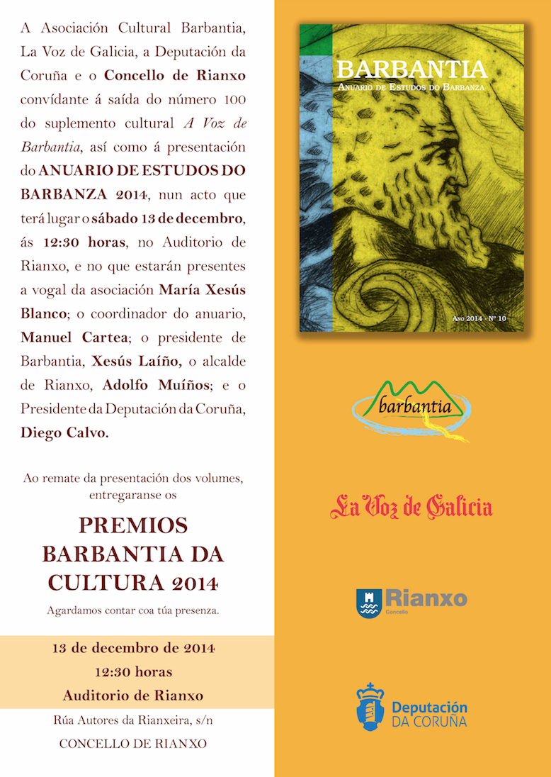 PREMIOS BARBANTIA DA CULTURA 2014 – PRESENTACIÓN DO ANUARIO DE ESTUDOS DO BARBANZA Nº 10